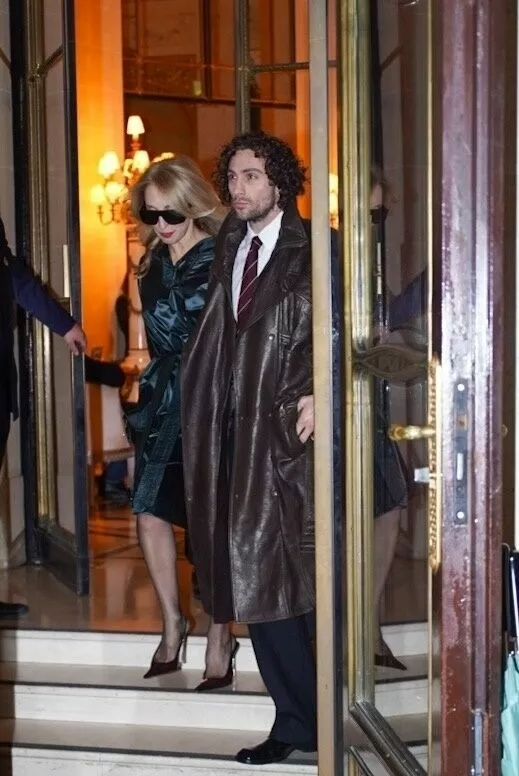 Аарон Тейлор-Джонсон и его жена Сэм Тейлор-Джонсон решили присоединиться к звездам, которые отправились во Францию, где сейчас проходит Неделя моды. 35-летний актер и 58-летняя режиссер держались за руки, когда выезжали из отеля 28 января. Аарон был одет в черную куртку поверх белой футболки и серые брюки, а Сэм — в черную кожаную куртку, шарф с леопардовым принтом и черные джинсы.
