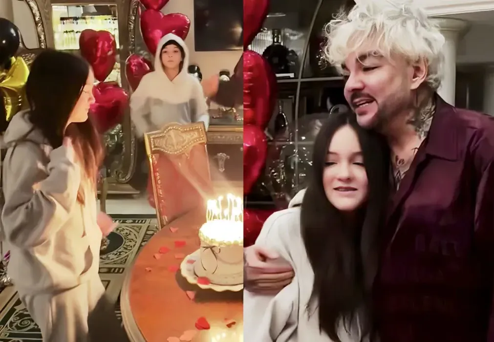 Филипп Киркоров показала в инстаграме*, как поздравил дочь с днём рождения. 1 декабря Алла-Виктория отмечает 14-летие, и певец устроил для неё сюрприз: надул шарики, зажёг свечи на торте, и ровно в полночь позвал её, чтобы вручить ей подарки.