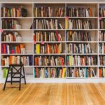 Полки с разноцветными книгами.