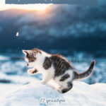 Бело-серый котенок на снегу.