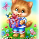 Прикольный котик с букетом цветов.