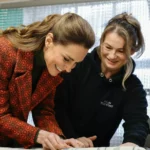 Компания Hiut разрабатывает и производит джинсы премиум-класса полностью в Великобритании, и принцесса пообщалась с тремя стажерами, которые показали ей производство и даже предоставили возможность пришить этикетку к паре джинсов, сшитых специально для принца Уильяма.