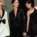 Туда вошли костюмы из твида, топы из тафты и юбки с бархатной отделкой. А ключевыми моделями стали миди-платье с пайетками и объемным бантом на спине, а также черное бархатное платье с белой тафтяной юбкой. Образы дополнены перчатками из сетчатой ткани в горох и другими аксессуарами.